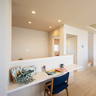 家族みんなの勉強スペース。家族の雰囲気が感じられる場所にしつらえることで、自然とみんなが集まります。