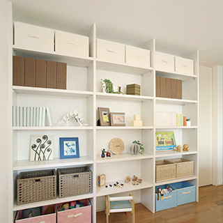 子供部屋などのちょっとしたスペースを利用して作られた本棚です。散らかりやすい本や書類を整理するのに便利な棚です。