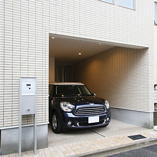 車を大切にする人には最適の、ビルトインガレージ。車から直接玄関に出入りが可能で、雨の日のお買物も快適です。