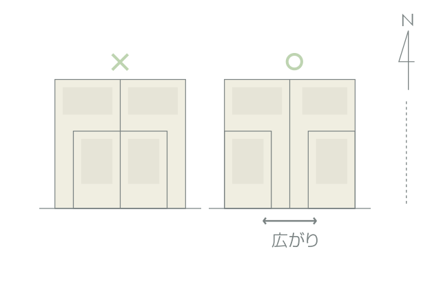 多棟分譲の場合、区画割りの工夫により、それぞれの敷地の価値が変わります。たとえば、延長敷地の取り方ひとつで建物の明るさや街並みの雰囲気ががらりと変わります。敷地の価値が上がり、採光、通風に適した最良の組み合わせを提案