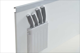 シンクエリアの下段スライド収納の扉の内側に装備。包丁は4本まで収納可能。